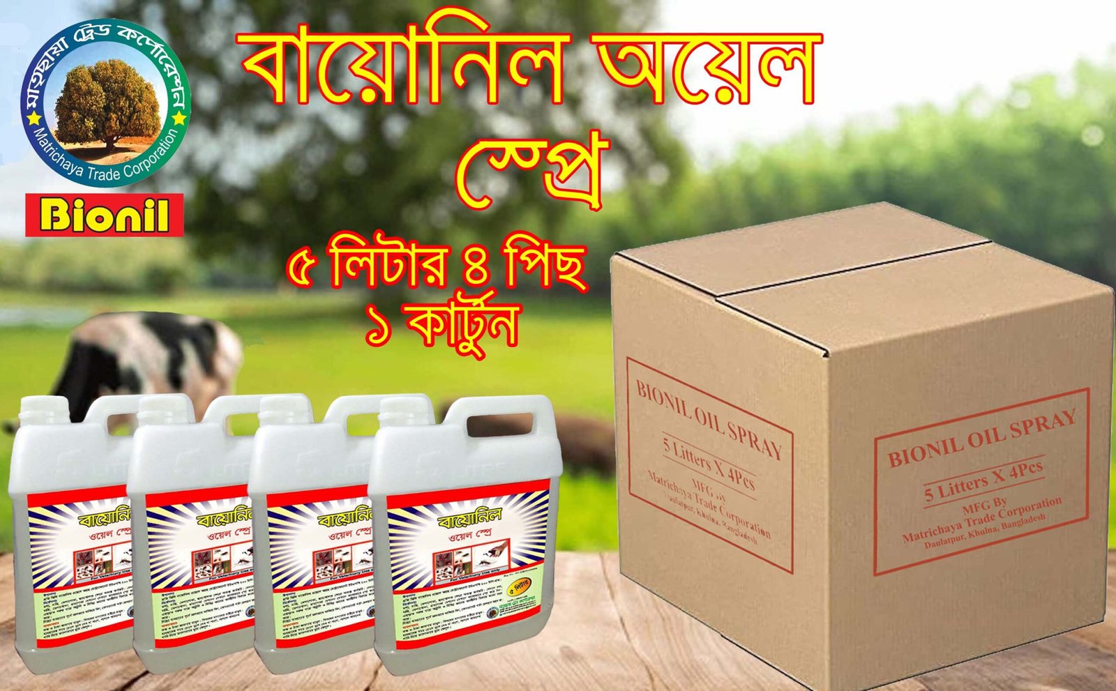 ৪. মশা, মাছির উপদ্রবে আপনার গবাদি পশু আক্রান্ত হতে পারে, লাম্পি স্কিন ডিজিজ, খুরা রোগ সহ বিভিন্ন ভাইরাস জনিত রোগে। এ রোগ গুলো থেকে মুক্তি পেতে ব্যাবহার করুন বায়োনিল ওয়েল স্প্রে।